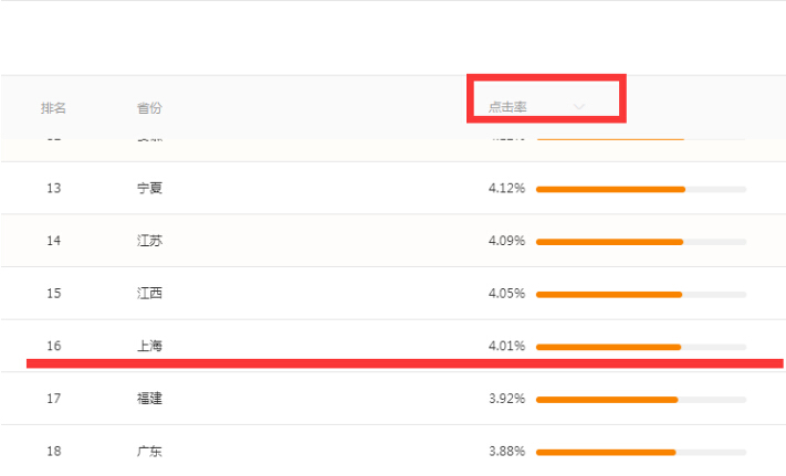 按照点击率排序,你就选择3.93以上16个地区进行投放。