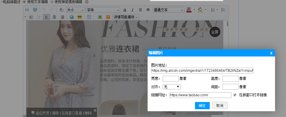 使用文本编辑,是可以上传图片与文字的,我们的图片可以从图片空间选择或者从电脑本地上传,需要注意的是我们图片的大小如果不符合规格的可以自己去用作图工具去修改。