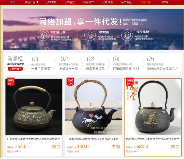 首先进入1688的首页,在货源位置选择供应商,然后输入你想代理的产品类目的核心词,然后会自动出现该类目的关键词里面,自己去选择一个自己认为匹配度最大最适合自己的就可以了,然后会出来很多商家,而我选择是的茶壶,我们也需要做一下筛选!