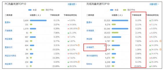 比如突然有了大量的来自于手淘首页的流量的时候,这时候你的转化率肯定是会下滑的,此时你只需要看一下跟行业均值对比,你的手淘首页流量有没有比较差,如果都OK,是可以不用处理的。